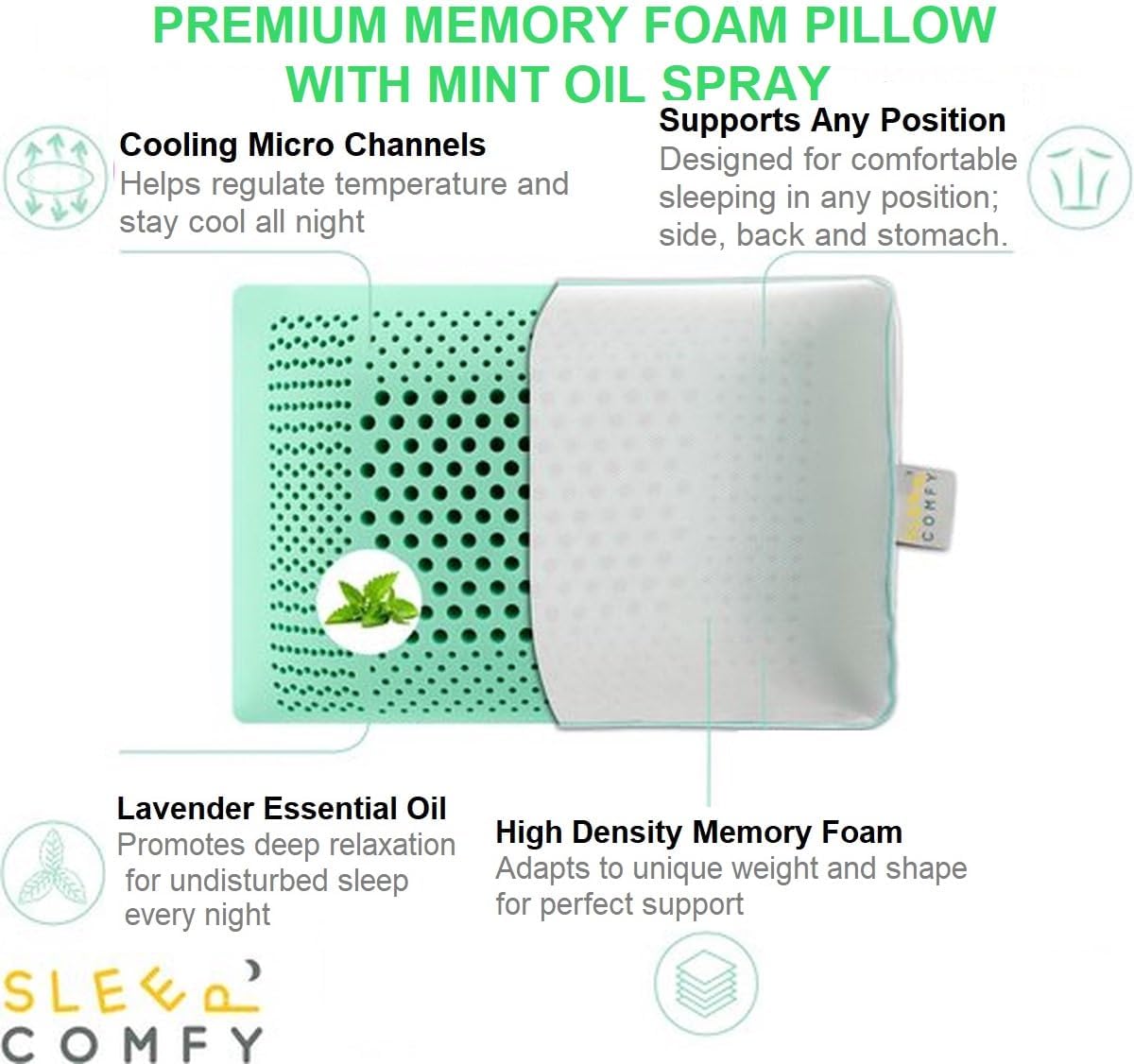 خواب بهتر: آیا تا به حال به این فکر کرده‌اید که چرا صبح‌ها بعد از بیدار شدن از خواب، احساس خستگی و تعریق زیادی دارید؟ سری فوم‌های مموری آروماتراپی که توسط SLEEP COMFY با ۸۵۷ کانال هوا توسعه یافته‌اند، برای تسکین این دردهای آزاردهنده و تعریق طراحی شده‌اند. Sleep Comfy با بالش‌های ارگونومیک و ارتوپدیک در خدمت شماست، زیرا ما معتقدیم که همه برای داشتن یک سبک زندگی سالم به خواب خوب نیاز دارند.سری فوم مموری آروماتراپی SLEEP COMFYپد فوم مموری اوشن آروماتراپی SLEEP COMFY با فوم مموری نرم و حمایتی پر شده است. خود بالشتک فوم مموری بی‌بو است. می‌توانید از عطر اقیانوس که همراه محصول ارائه می‌شود، هر چند بار که دوست دارید استفاده کنید. عصاره فوم مموری می‌تواند سر و گردن را شکل دهد، وزن را به طور مساوی توزیع کند، فشار را کاهش دهد و به تسکین درد گردن و کمر کمک کند.طراحی عالی با سیستم تهویه: طراحی مجرای هوا برای تمام فصول. پاف اوشن آروماتراپی دارای سیستم تهویه محکمی است. اگر سرتان را روی فوم حافظه‌دار با ۸۵۷ کانال هوا قرار دهید، می‌توانید تهویه را حس کنید.
